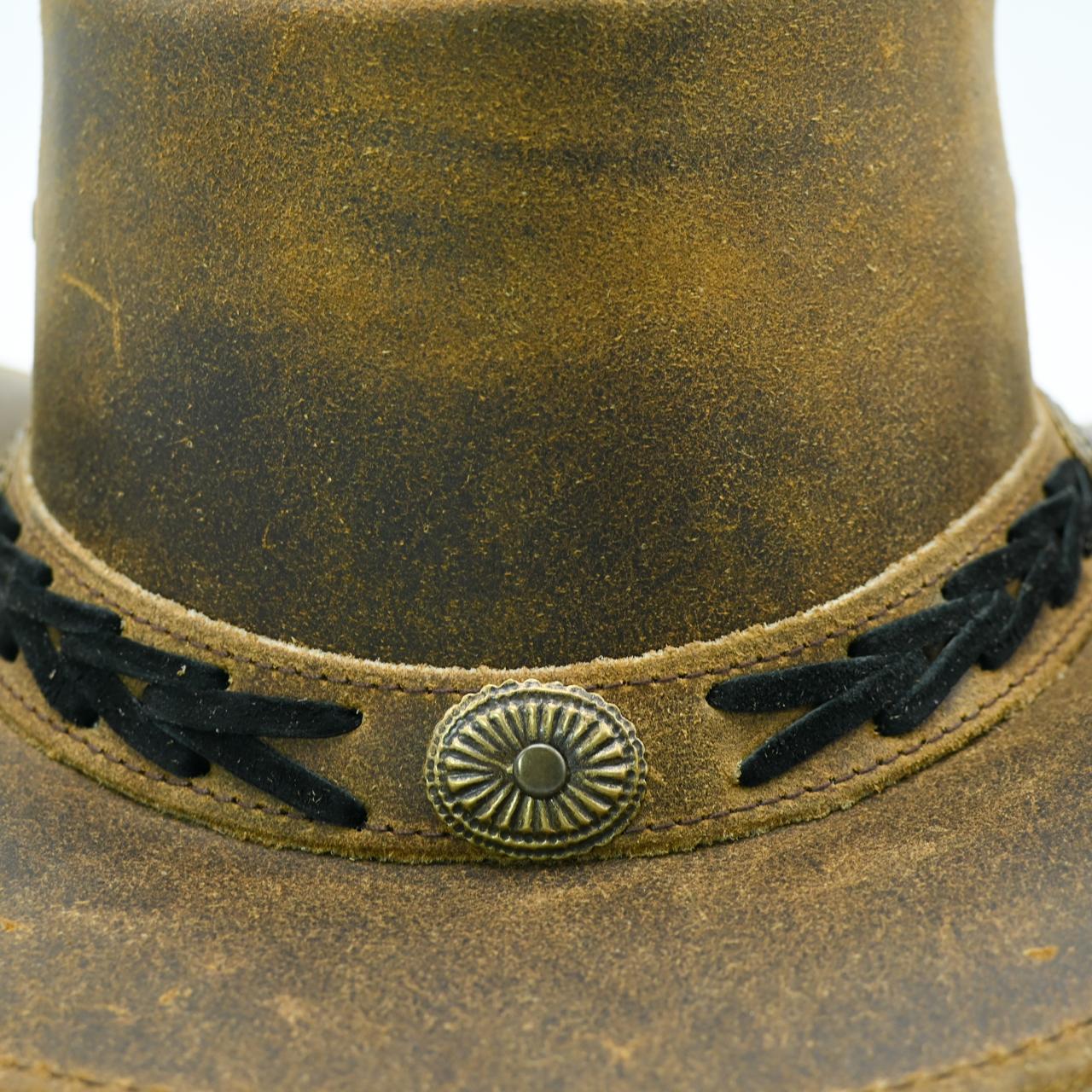 Artisanal Detailing: Choose between a hand-braided leather trim for a minimalist look or a decorative band featuring metallic conchos and black woven accents.